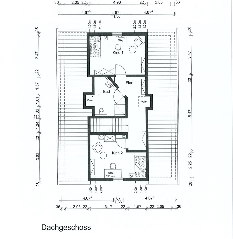 Im Erdgeschoss und im Obergeschoss befindet sich jeweils ein modernes Tageslichtbad mit ebenerdiger Dusche. Der große Hauswirtschaftsraum neben dem Eingang ist praktisch angeordnet und bietet Platz für Waschmaschine, Trockner und zusätzliche Lagerung. Vier weitere Zimmer eignen sich flexibel als Schlaf-, Kinder- oder Arbeitszimmer.